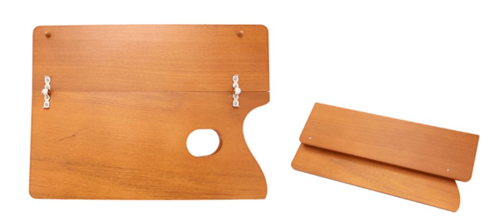 |  | This is actually a two-for-one selection from the venerable art supply house of Holbein, but for plain air painters, it's really all about this high-quality nickel-plated brass "heirloom quality" palette cup with its mirror-like finish. You can buy one in a smaller size or in a double unit paired with a second cup. Their voluminous but not bulky because of the sleek low profile (2 3/8″ across but less than 2″ high). The cup sports a precision-machined screw-on cap with a gasket to prevent spilling. It has a clamp at the bottom to fit directly onto the edge of your palette. Sells for around $40 ($55 for the paired cup model). Totally worth it. Lasts a lifetime, and replacement gaskets (the rubber liner that makes it airtight and leakproof) are available to stock up on. Feels good in your hand.