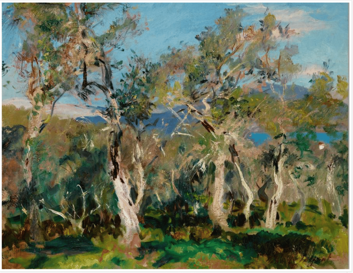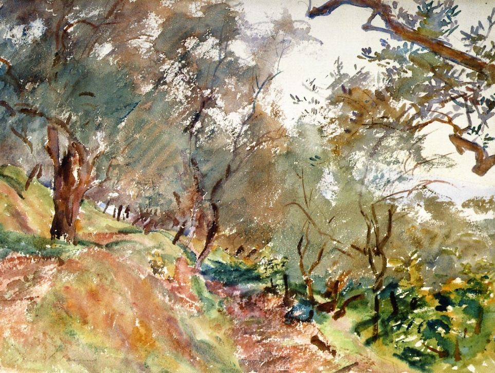 | — advertisement — |  |  | John Singer Sargent, Ilex Wood, Majorca. 1908 | His pent-up energy for vivid color and the vibrant life and forms of nature expressed itself in rich, expressive studies of the fruit trees, buckthorn, and wild olive groves among the island's ancient terraced hills and sunny, spice-scented grottos.