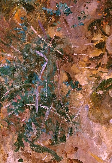 |  | John Singer Sargent, Veldemosa, Majorca: Thistles and Herbage on a Hillside (1908) | Here's what great painters do: Sargent doesn't just paint the sandy roots and loping branches – he makes emotive colored marks over an abstract design that combine to express an abiding quality – wildness and life-energy sensed in nature.