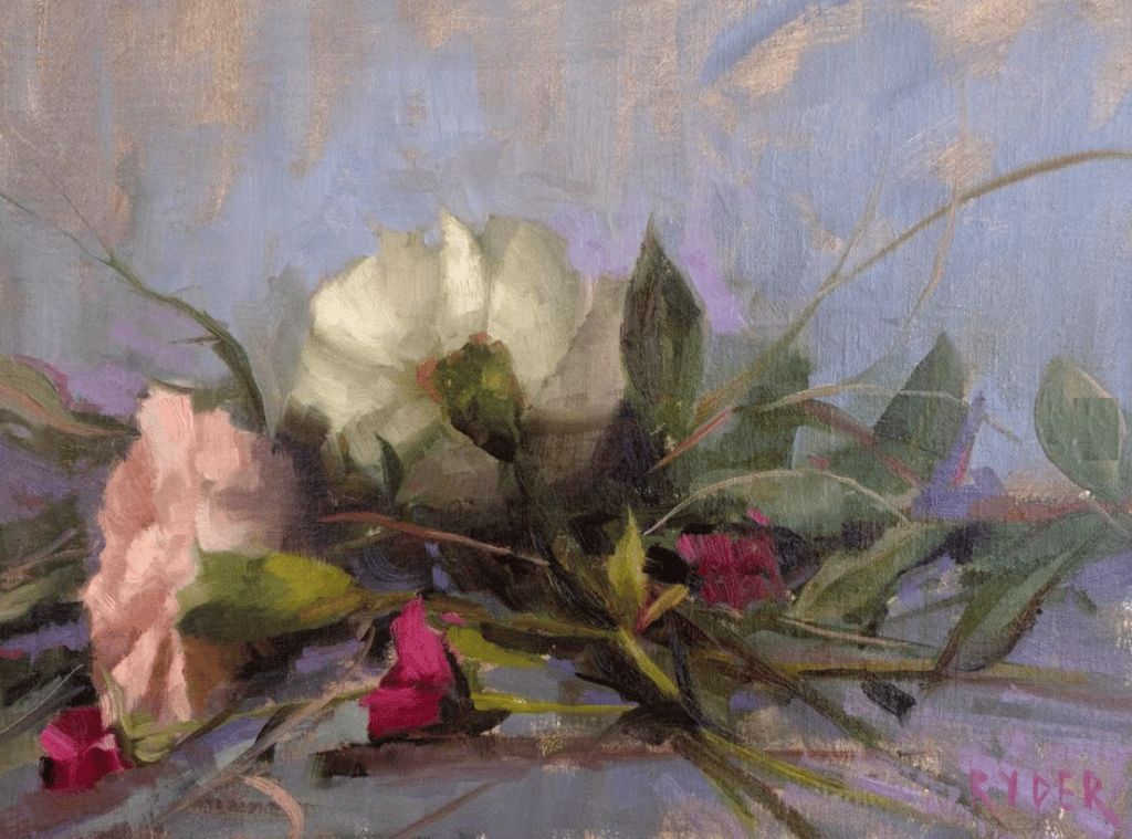 Perhaps someone reading this will cut and paste the list and – who knows – maybe even print it out. That way it can get lost in a pile of "important stuff" inhabiting some obscure corner of someone's own art-making space – where it will wait to be discovered a decade hence and shared anew. | — advertisement — |  |  | Matt Ryder, carnation study, 9X12 inches | ON PAINTING - First get the viewer's attention – preferably from a distance.